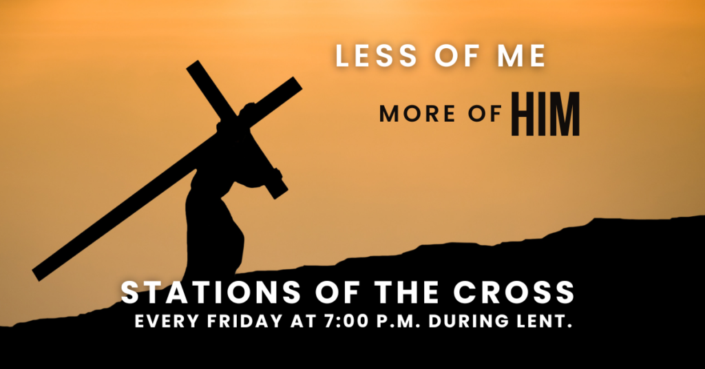 Join us each Friday at 7 p.m. until Good Friday for the Stations of the Cross Mass, a time of prayerful reflection on Christ’s journey to Calvary. This solemn devotion invites us to walk spiritually with Jesus, deepening our understanding of His sacrifice and love. Each week, volunteers from the Knights of Columbus, Catholic Women’s League, and the Legion of Mary will lead us through the Stations. All are encouraged to take part in this meaningful Lenten tradition.